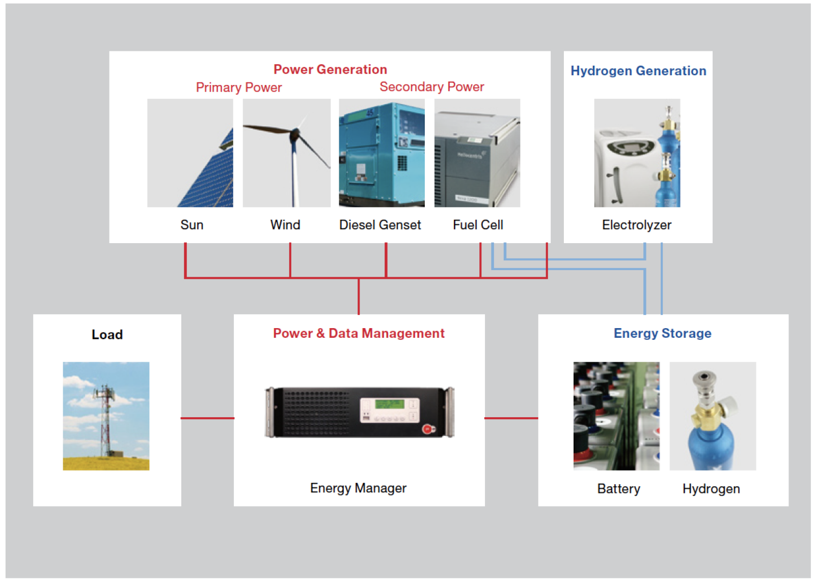 The system combines wind and PV power, fuel cell and battery technology to form a fully autonomous hybrid system. Excess energy from the renewable power sources can be converted into and stored in the form of hydrogen, which powers a fuel cell ensuring energy supply during any possible daily and seasonal circumstances. A bat-tery is used during short-term fluctuations and supplies power in the night. For emer-gency situations the system also includes a diesel genset. Top-of class components ensure constant system availability even in the harsh climate conditions of Kuwait.